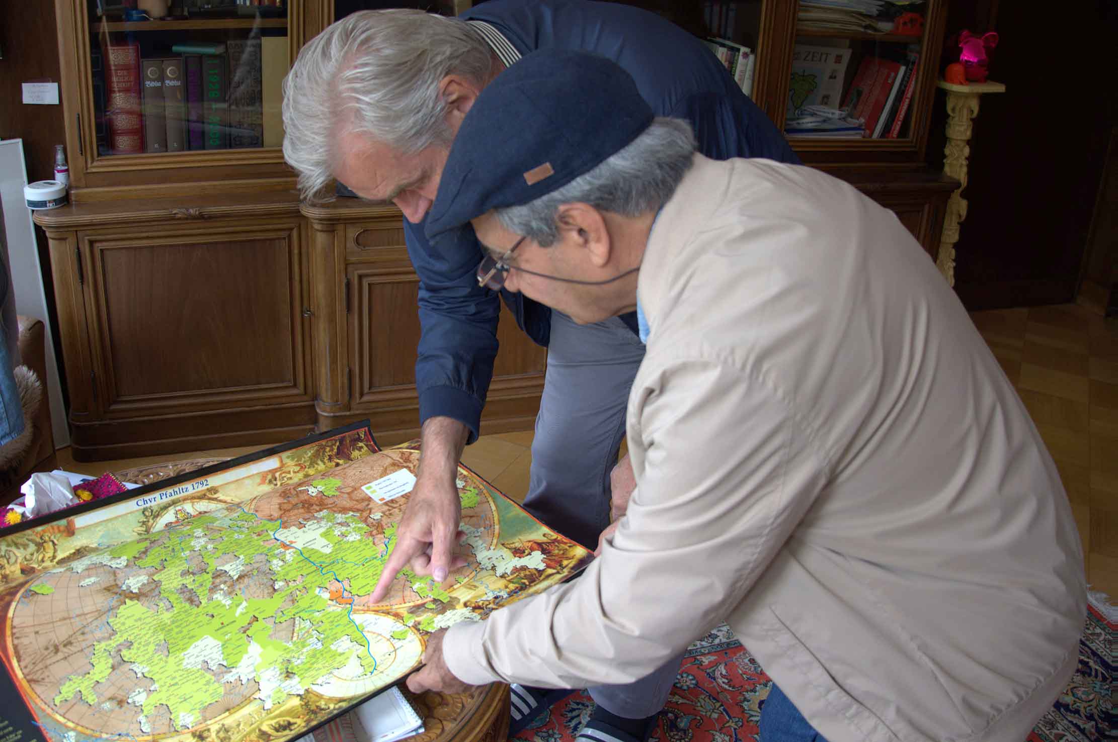 Mohammad Hossein Papoli Yazdi with Roland Hiller working on the map