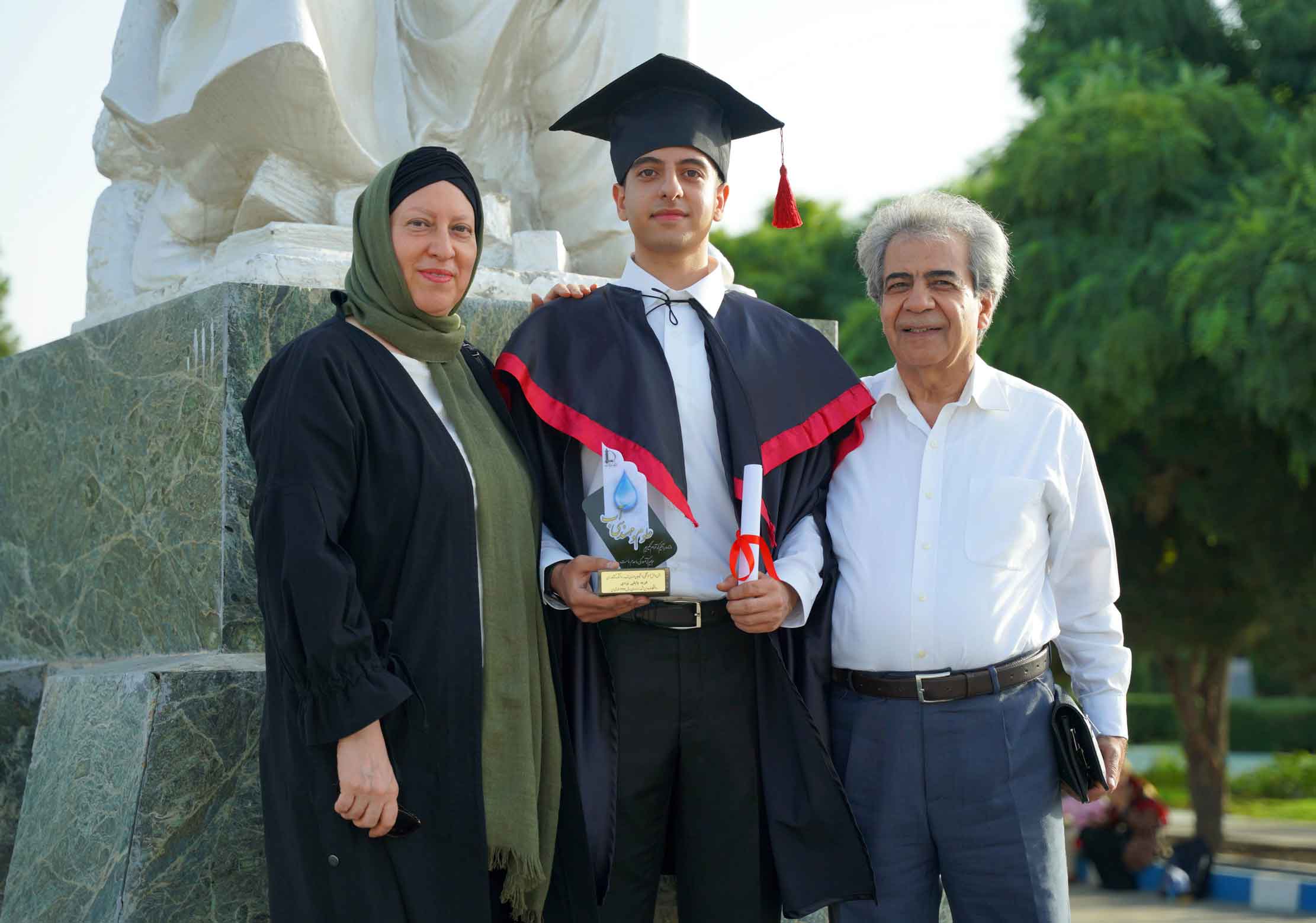 Mohammad Hossein Papoli Yazdi with his wife at the graduation ceremony of their son Farbod Papoli Yazdi - Ferdowsi University of Mashhad